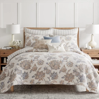 The Selesta Blue Quilted Euro Sham by Levtex Home is inspired by a beautiful garden of floral vines. Offered in cream, grey taupe, this design will immediately transform your bedroom. These shams feature blue, cream and grey. The Euro Sham (26x26in.) is cotton, quilted with a cotton rich filler and is machine washable. Pillow inner not included. Enjoy this for years to come!